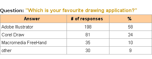 市面上的矢量软件不计其数,但在印前设计领域,Adobe Illustrator、Corel Draw和Macromedia Freehand呈三足鼎立的状态。以下是笔者在2003年11月所作的抽样调查: